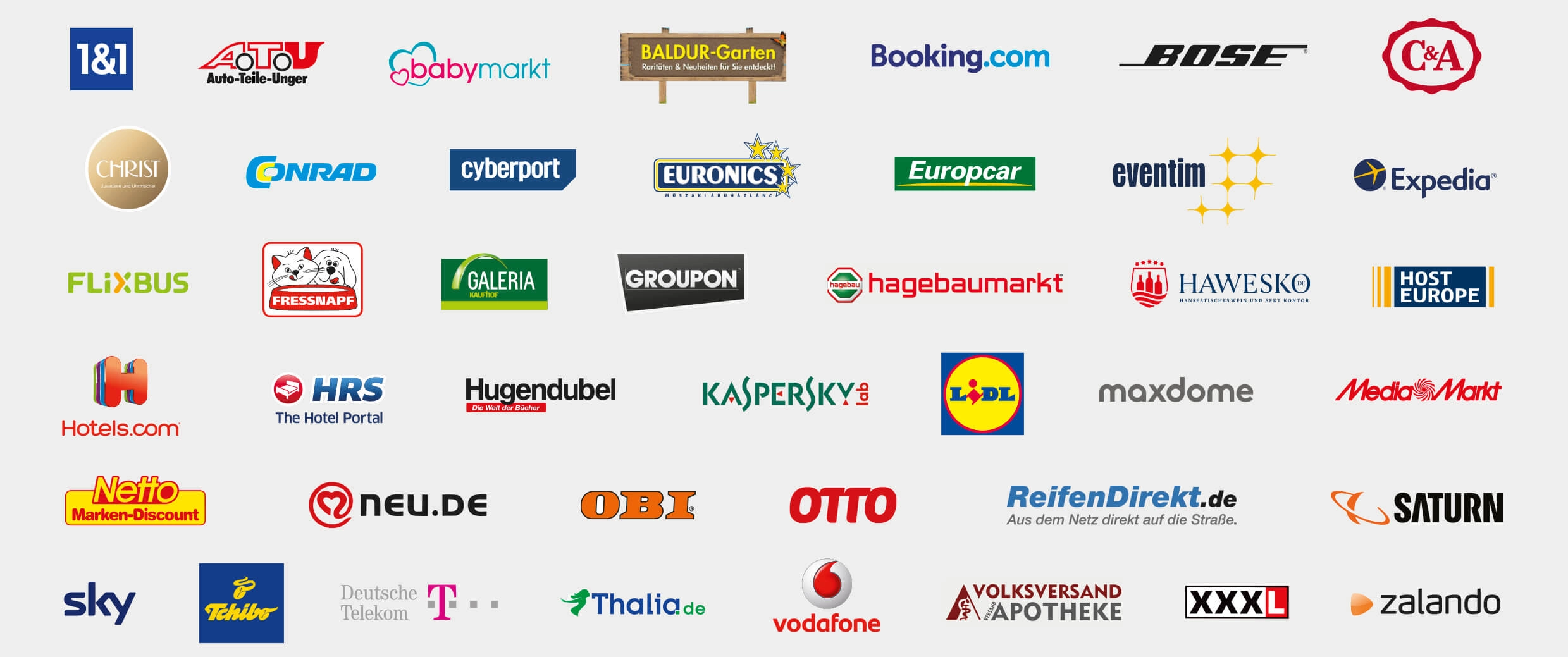 Das Händlernetz der itRente umfasst über 800 Einzelhändler fast aller Branchen, die online- und z. T. auch stationären Einkauf anbieten. Oben sehen Sie nur eine kleine Auswahl der Anbieter. Da dieses Händlernetz lebt und sich ständig verändert, weisen wir darauf hin, das die gezeigte Auswahl den Stand März 2017 widergibt. Cashback-fähig sind nur online-Einkäufe. Visa hat ca. 35 Mio. Akzeptanzstellen weltweit.